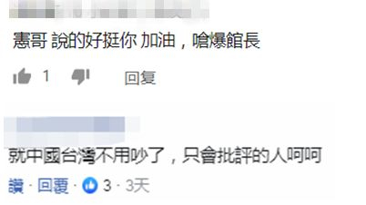 对于此次吴宗宪的反呛,有岛内网友点赞道,宪哥说的好,挺你;就中国台湾,不用吵了↓