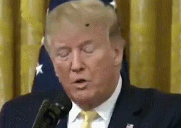 根据路透社视频,特朗普正在演讲中大吹美国军队,这时,一只没有眼力见的苍蝇乱入了,似乎还有那么一瞬间,盯上了特朗普的金黄的刘海!