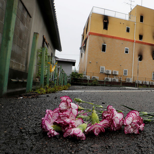 京都动画火灾后一日:现场仍有焦臭味,动漫粉丝冒雨献花哀悼