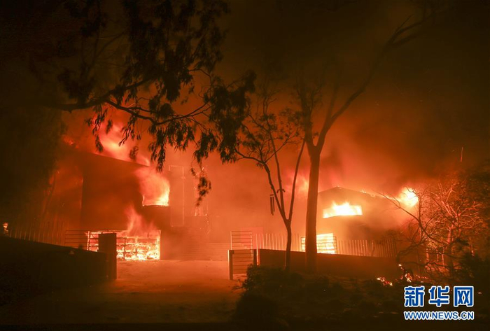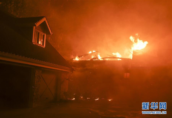 11月9日,在美国加州马里布市,野火烧毁一幢房屋。