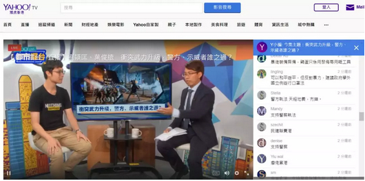 Yahoo新闻(香港)29日直播节目“冲突武力升级,警方、示威者谁之过”,网民留言多支持警察,如“警方执法,天经地义,没错”