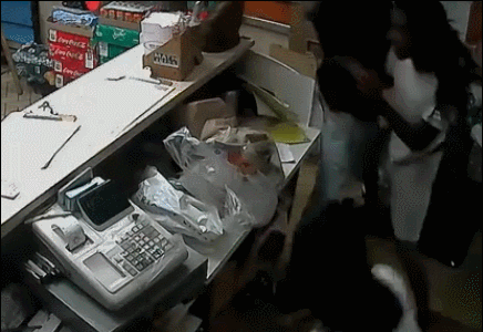 画面曝光!美国中餐馆遭抢劫 华裔老板娘挥刀吓跑劫匪