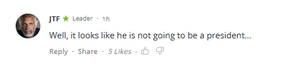 用户@JTF表示赞同“看起来他不会成为总统了”。↓