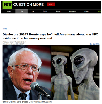 据RT描述,桑德斯随后向罗根保证,如果他作为总统获悉任何有关UFO的消息,会回到罗根的节目宣布。