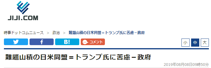 日本时事社称,安倍一直以日美同盟“前所未有地稳固”而骄傲,但如今却遭到美方的多重施压。而且现在日韩关系日益恶化,美日韩三国的合作也将根基不稳。安倍将于8月下旬的法国G7首脑会议及9月的联合国大会上同特朗普会谈,继续协商并讨论日美同盟的方式。