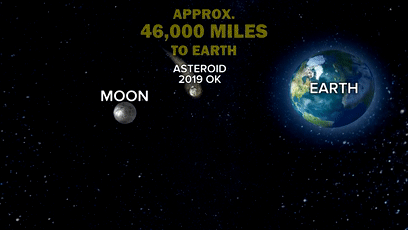 当时,一颗被命名为“2019 OK”的小行星正以24.5 km / s(相对于地球)的速度朝地球直奔而来。并不是科幻片,这颗直径在57-130米之间的小行星,最终以0.00048个天文单位的距离擦过地球。