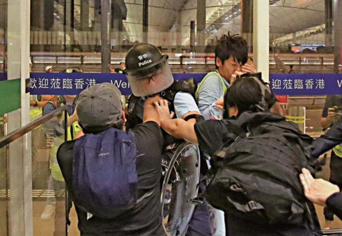 香港警方于8月14日凌晨3点25分发布声明,对发生在机场的暴力行为予以极严厉的谴责。声明称,8月13日晚至8月14日凌晨,大量示威者于香港国际机场非法集结,并禁锢、欺凌及殴打一名旅客及一名记者,对他们造成身心伤害,警方对激进示威者的严重暴力行为予以极严厉谴责。