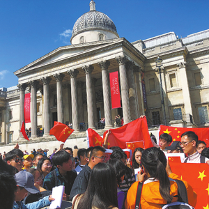 “从建群到游行,也就三四天,我加入得比较晚,只有一天准备时间。”在伦敦参加了议会广场游行(如图)的姚同学向《环球时报》记者介绍,整个活动前后筹划时间非常短。姚同学就读于伦敦国王学院,这个期间正好是考试周,“我们不想影响学业,所以大家也费尽心思,用最省事的办法得到最好的效果”。姚同学说,许多人用A4纸打印了国旗和标语,有条件的就带上大幅国旗,一些学生建议统一穿红色衣服。