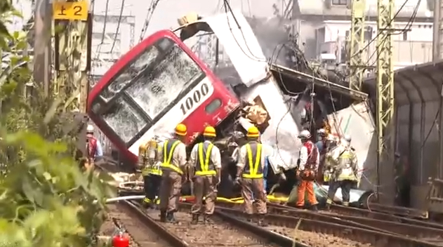 海外网9月5日电 据日本NHK电视台报道,5日,日本神奈川县京急线电车与一辆货车相撞,造成电车几节车厢脱轨。消防人员称,目前事故造成1名男性死亡,32人受伤。