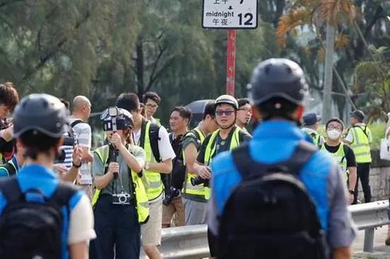 环球时报-环球网赴香港特派记者在现场看到,很多晚上的暴力示威现场,穿着记者马甲的人比暴徒还多。很多“记者”都围在暴徒旁边但是很少拍摄暴徒向警察扔燃烧瓶、纵火等罪行,相反等警察出动驱散人群时,他们就会站到暴徒前面,把镜头对准警察,给警察执法带来了很大阻碍。此外,记者还看到多起“记者”攻击辱骂警察的情况。比如在过去的这个周六,当警察抓捕一名暴力示威者时,很多人也跑过去拍摄。部分记者被警察告知退回后,就不再往前冲,但也有四五名身穿记者马甲的人一直在往前冲,并推搡和辱骂警察。警察很克制,但是很强硬告诉这些人,你采访没问题,但是不能妨碍警察执行公务。