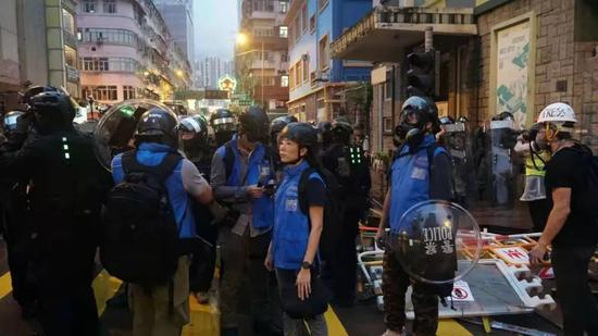 传媒联络队员在前线。图源:香港警察传媒联络队