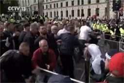 栏杆VS警棍!英国支持脱欧示威者与警方冲突 16人被捕