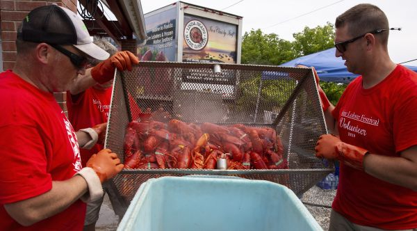 8月3日,在美国缅因州罗克兰举行的龙虾节上,志愿者在准备龙虾。 (新华社)