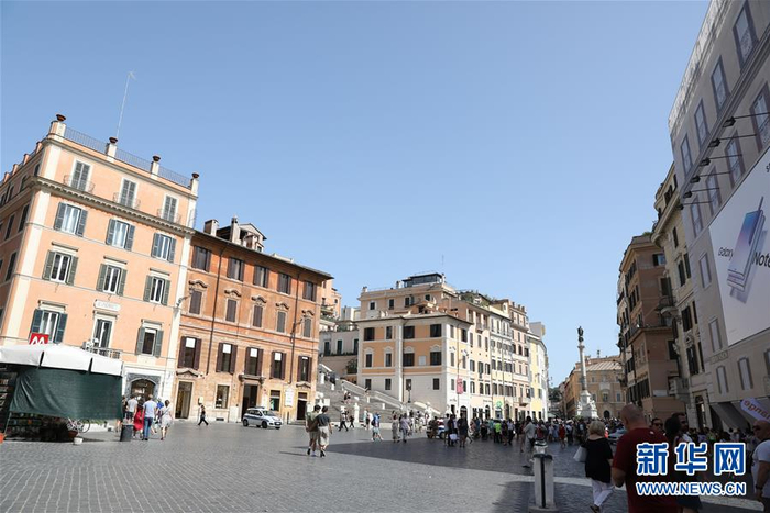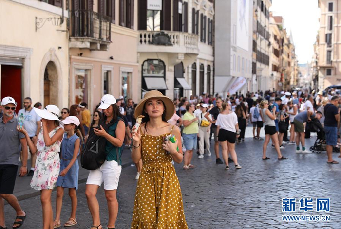 8月12日,在意大利首都罗马,游客冒着高温在阶梯上游玩。 当日,罗马最高气温达到37摄氏度,体感温度更是一度突破40摄氏度。 新华社记者程婷婷摄