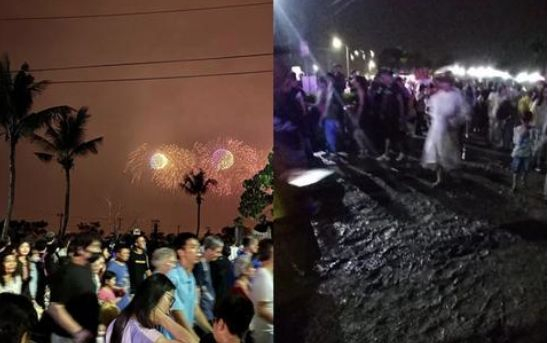▲图为台湾屏东烟花秀现场,满地泥泞,开始不到一半就有大批民众离开。(来源:台媒)
