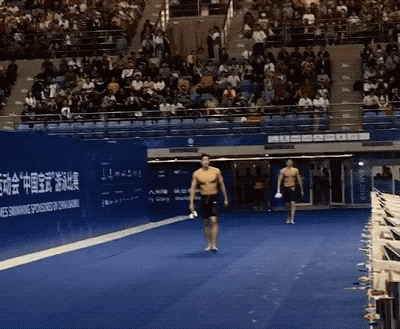 赛后,汪顺向观众席敬了一个军礼