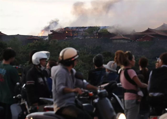 首里城附近的冲绳居民指,间断地听到爆炸声,浓烟滚滚。