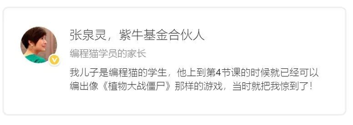 作为学员家长,张泉灵直言,为了孩子的未来,我特别推荐编程猫在线编程课。