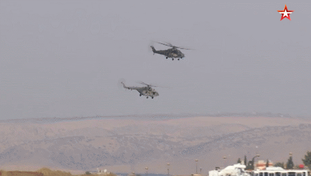 “这是到达叙利亚北部的第一批俄战斗直升机。飞机正在准备着陆。这是一个历史性的时刻——从今天起,我们的航空部队将在卡梅什利机场长期活动。” 红星电视台记者巴维尔·列姆涅夫现场报道说。