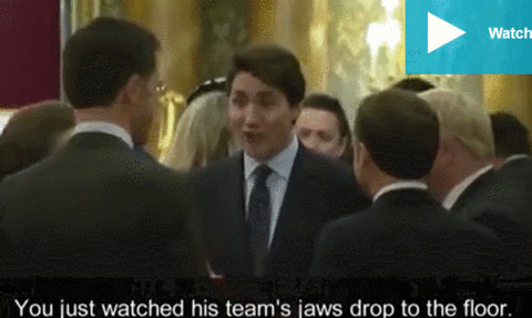 根据外媒给出的字幕,先是约翰逊面向马克龙问,“这就是你迟到的原因?”特鲁多插话进来说:“他(马克龙)迟到是因为开了个40分钟的新闻发布会。”特鲁多又一边说着一边比划,“我看到他团队(特朗普)的人,下巴都惊掉了!”
