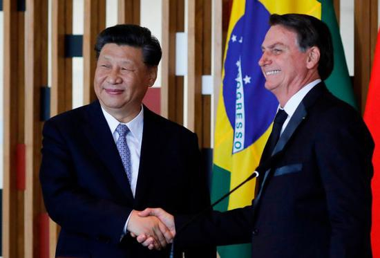 今年11月13日,中国主席习近平与巴西总统博索纳罗在巴西利亚会见