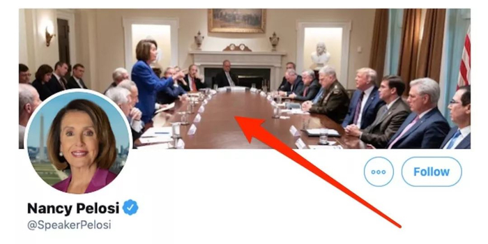 随后不久,佩洛西将这张照片设定为自己的推特头图。美众议院议长办公室副幕僚长哈米尔在推文中还特别提到,佩洛西更换了头图,并“感谢特朗普提供照片”。