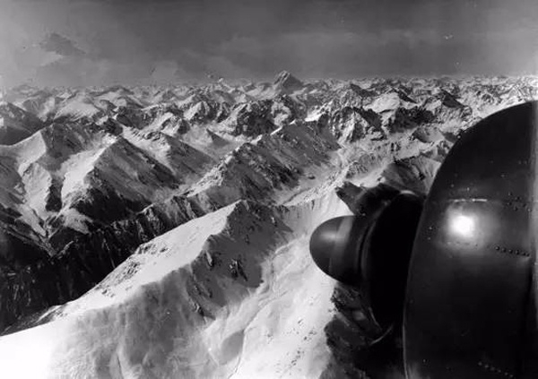 资料图:这张照片相当珍贵,是韩琳驾驶伊尔-12运输机飞往拉萨的途中,新华社记者钱嗣杰从飞机上拍摄的。阳光在一眼望不到头的雪山间投下阴影,要知道这里就是一直被称为“空中禁区”的地方。而这时,我空军驾驶员正驾驶着飞机勇敢穿越。