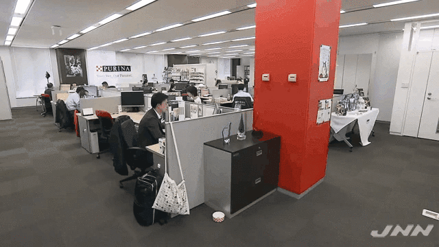 该部门员工内记利宏就经常带自己家的美国可卡犬布亚特一起上班,办公室里不仅有它的“私人厕所”,门口还有围栏挡着不让它跑的别的部门。主人上班期间,它就在办公室里玩耍,还可以自由出入重要会议。