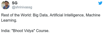 更多网友质疑,印度政府在浪费公共资源。有人讽刺称:“世界其他地区:大数据、人工智能、机器学习。印度:‘鬼魂研究’课程。”