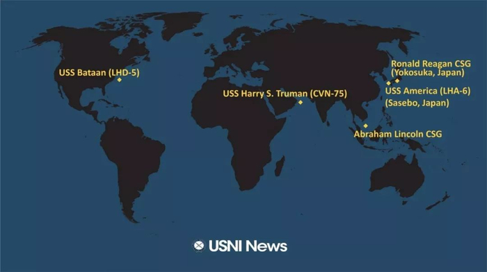 2019年12月23日、30日,美国林肯号航母编队位置示意图。图片来源:美国海军学会网站。