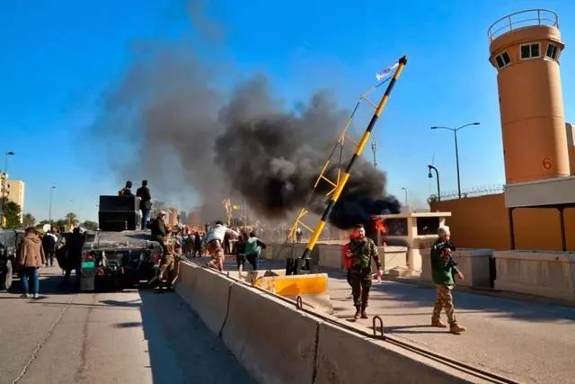 ▲2019年12月31日,在伊拉克巴格达,示威者在美国驻伊拉克大使馆外点火。