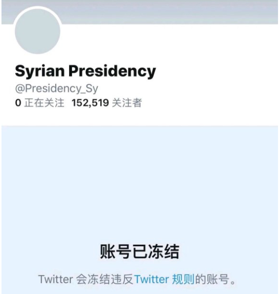 叙利亚总统府推特账号被封截图