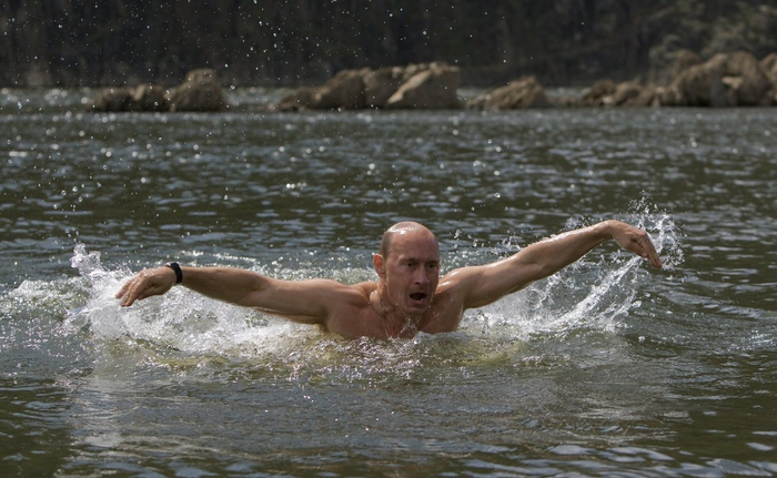 普京2009年在赫姆奇克河度假的照片(图:俄罗斯卫星通讯社)