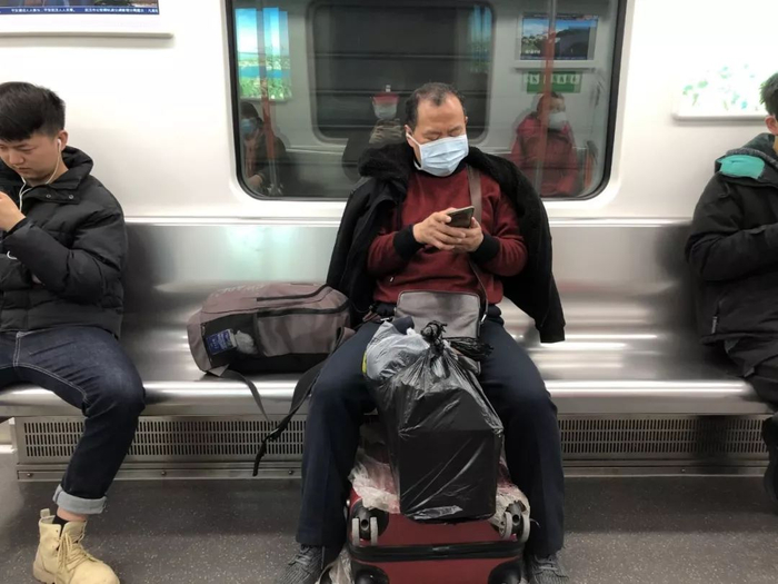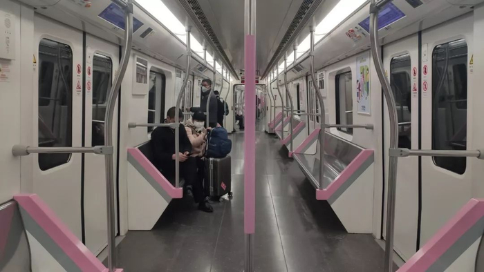 “封城”公告发布后23日上午搭乘地铁七号线的乘客