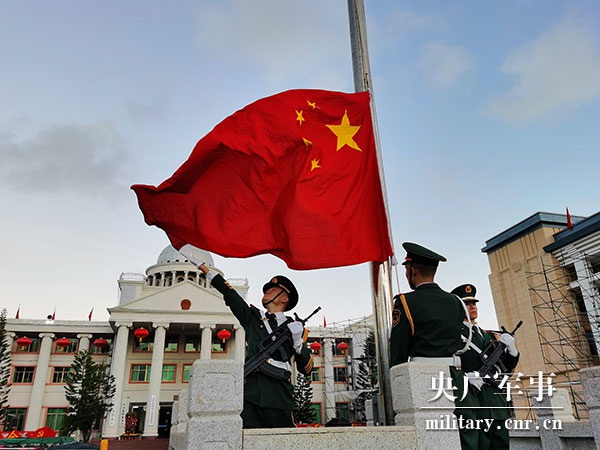武警三沙中队正在举行一场特殊的升旗仪式。