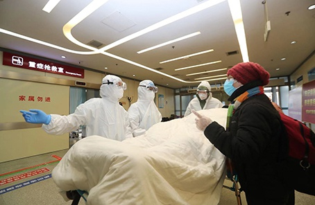 急诊一线人员准备为就诊患者检查