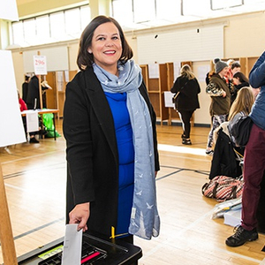 2月8日,在爱尔兰首都都柏林,新芬党领导人玛丽·麦克唐纳在投票站投票。 新华社 图