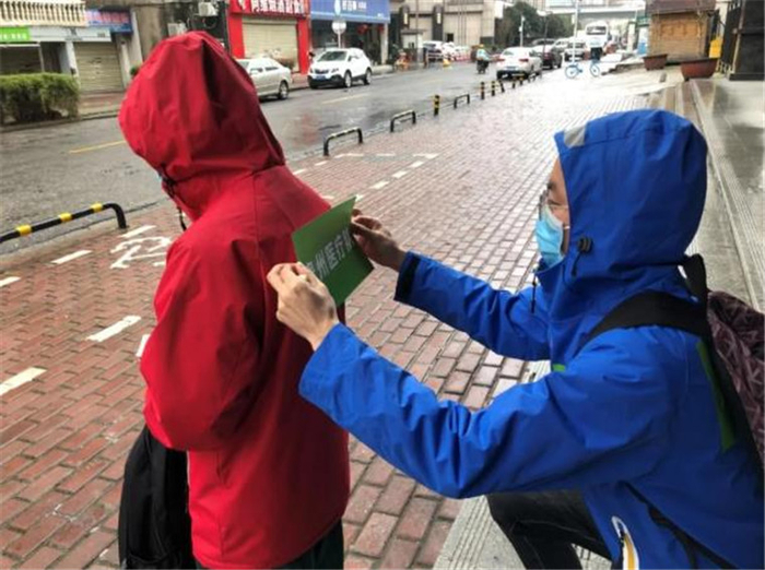 一起等车的同伴郭磊冲锋衣上贴着“贵州医疗队”的队标和姓名,杜富佳也从包里掏出她那份不干胶,请郭磊帮忙。