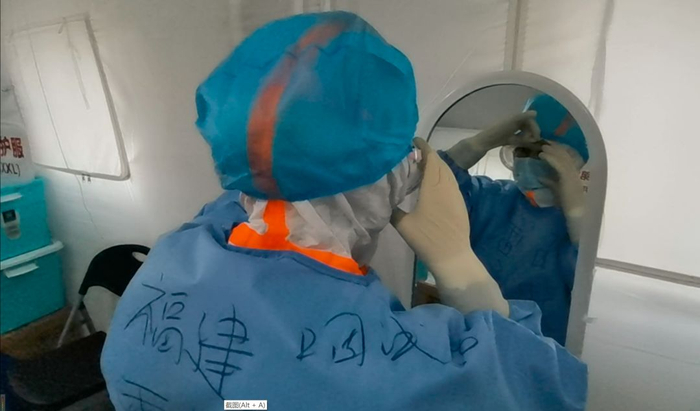 在隔离服上写字,是医护人员每天最有仪式感的时刻。