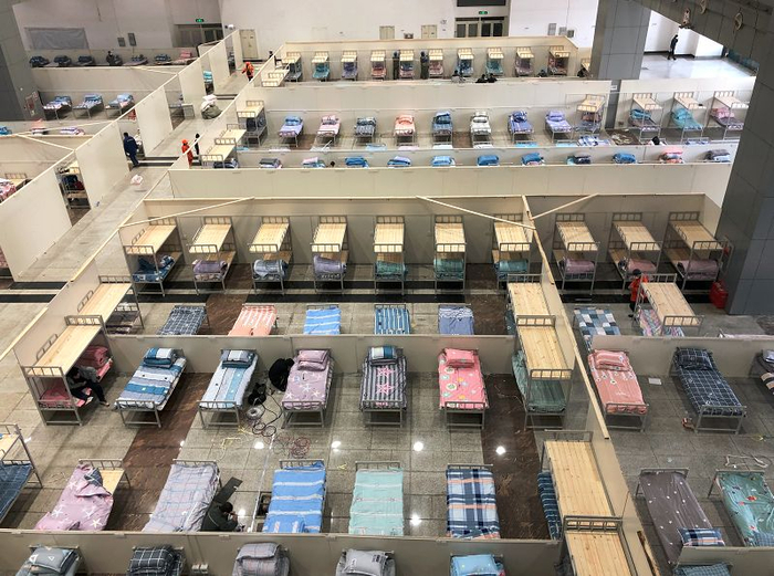 一声令下,从2月4号起,洪山体育馆、武汉国际会展中心、武汉客厅开始了一场与时间赛跑的“方舱”改造,总计划床位超过4000张。