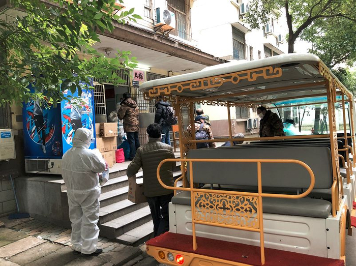 从2月21号开始,出院患者还要去康复观察点进行为期14天的医学隔离观察。医护人员和各区、街道、社区的工作人员接力,把患者带到“康复驿站”。