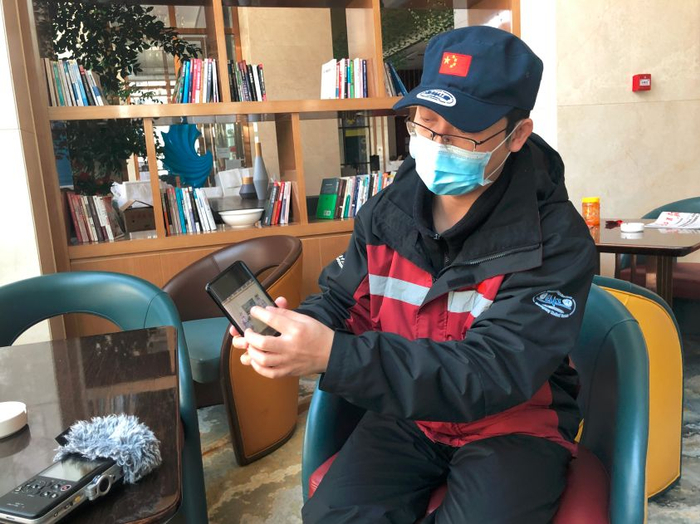 2月5号中午,武昌区区长余松正在武昌方舱医院现场指挥调度。从酒店征用床只,从中小学借来书桌,甚至被子的颜色都来不及统一。