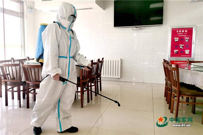 第二天,大家就看到身穿防护服的宋妮,戴着护目镜和口罩,背起消毒器楼上楼下开始消毒,班排宿舍、楼道厕所、灶房饭堂,就连暖气片后面都不放过。
