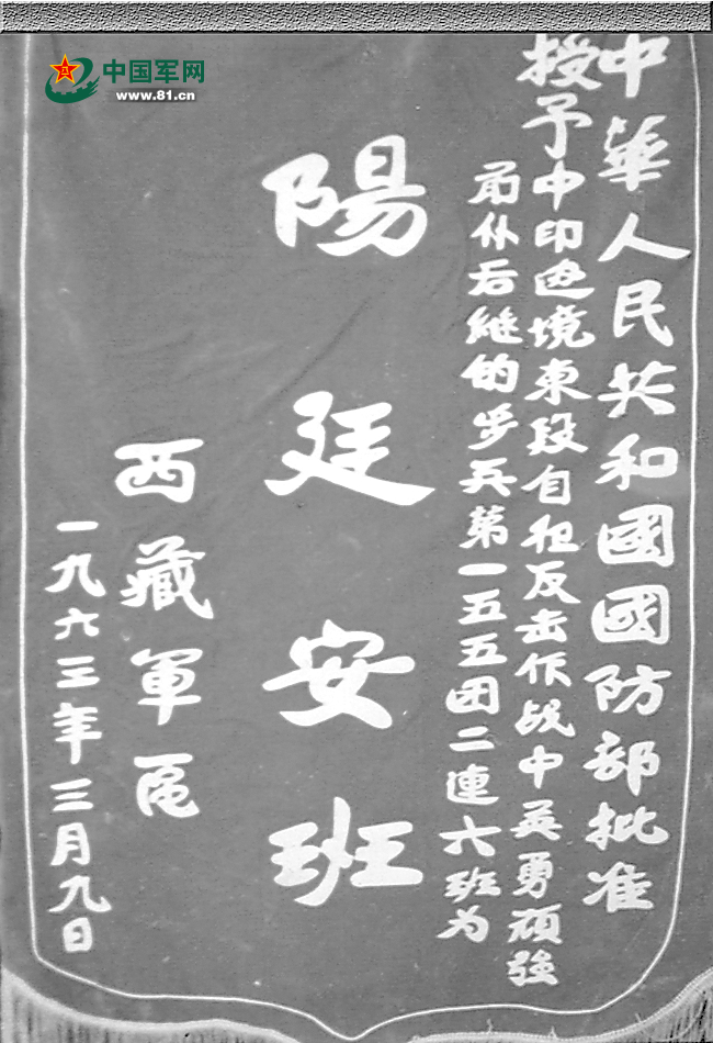 战后,六班用生命叫响“两不怕”血性口号的英雄事迹很快传遍了部队,西藏军区为六班记集体一等功,为阳廷安追记一等功。1963年,六班被国防部批准授予“阳廷安班”荣誉称号,授予“阳廷安班”战旗一面,并树为“四好标兵班”。