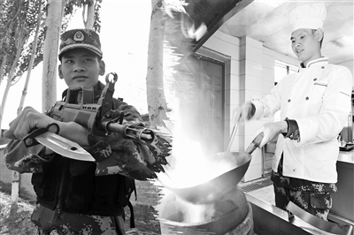 “这菜好吃啊,不愧是特战队员,啥都能干!”训练结束,武警江西总队机动支队官兵一进食堂,就被四溢的菜香勾得食指大动。听到战友的赞扬,在后厨忙碌的邱钊培揉了揉被油烟熏红的左眼,笑了。