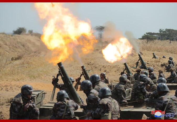 据朝鲜中央通讯社4月10日报道,朝鲜劳动党委员长、国务委员会委员长、武装力量最高司令官金正恩近日指导朝鲜人民军各军迫击炮兵部队的炮击训练。朝鲜劳动党中央领导干部观摩训练。