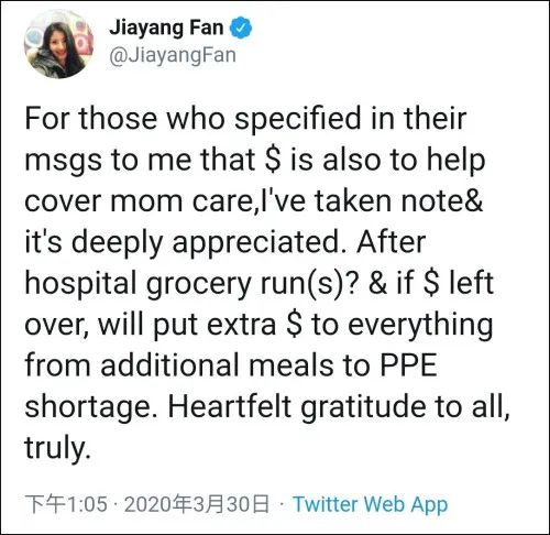 好在是没有人认为她这样做有什么不对,还积极响应。樊嘉扬发文感谢每一个慷慨解囊的人: