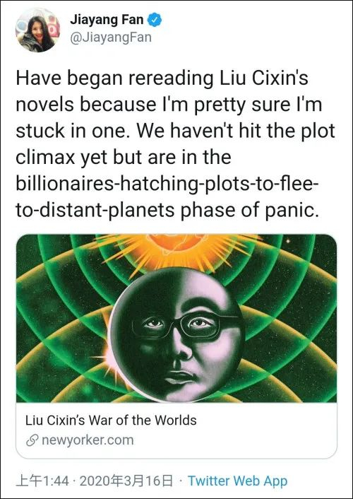 疫情中的樊嘉扬再次拿起《三体》进行阅读,并重新思考人生: