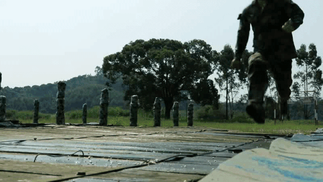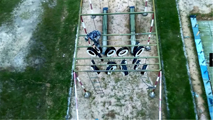 小链接:400米渡海登岛障碍课目训练是两栖作战部队日常训练的项目之一,这是一种为适应渡海登岛作战体能要求的障碍训练。按照系统组合的原理,不同程度地模拟装载、航渡、换乘、抢滩上陆的特殊状态,集体能、技能和心理训练为一体。场地采用4次回转,共10个项目,包括跑道、间隔地和设置于跑道上的障碍物等。