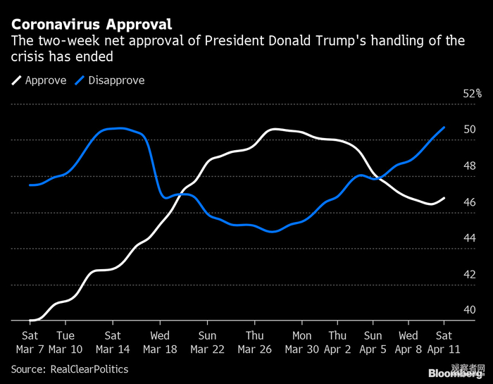 需要注意的是,美国联邦政府的领导地位在此次抗疫新冠肺炎中没有得到体现;相反,白宫推诿责任,已经试着把锅甩给中国、世卫组织以及地方政府。这导致的后果很明显:彭博社援引民调机构RealClearPolitics数据显示,2周内认为“特朗普抗疫无能”的人已超过50%,认为其“抗疫有方”的人下降至46%左右——走势和2周前完全相反。3月底朗普支持率的上升,可以理解为美国总统的“选举活动刺激作用”、以及美国人在灾难中的“聚旗效应”。